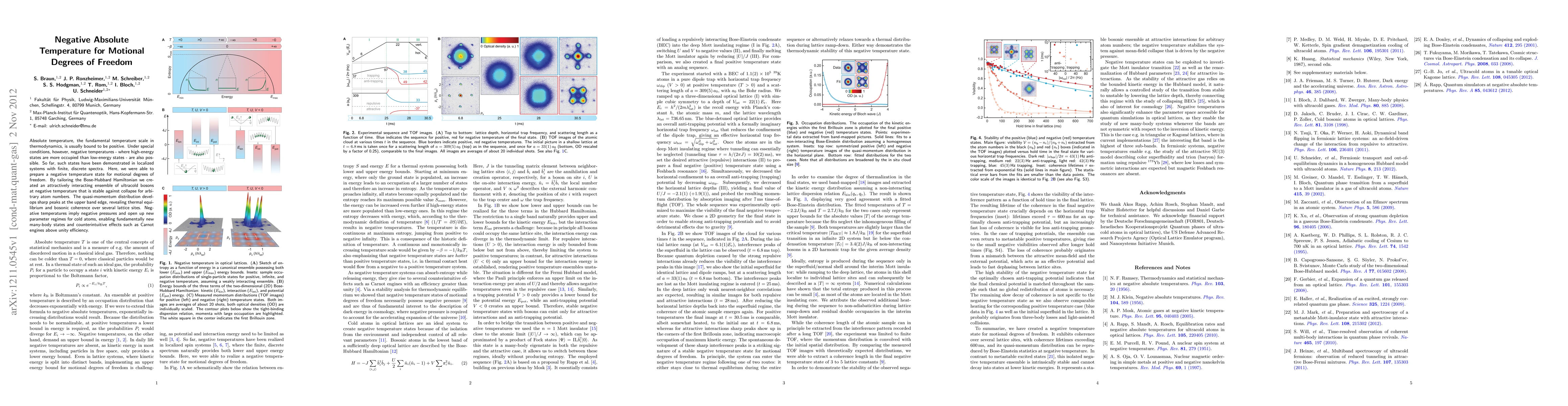 Researchers created a negative temperature state for ultracold bosons, enabling fundamentally new many-body states and counterintuitive effects like Carnot engines above unity efficiency. The system remains stable against collapse for arbitrary atom numbers, revealing thermal equilibrium over multiple lattice sites.