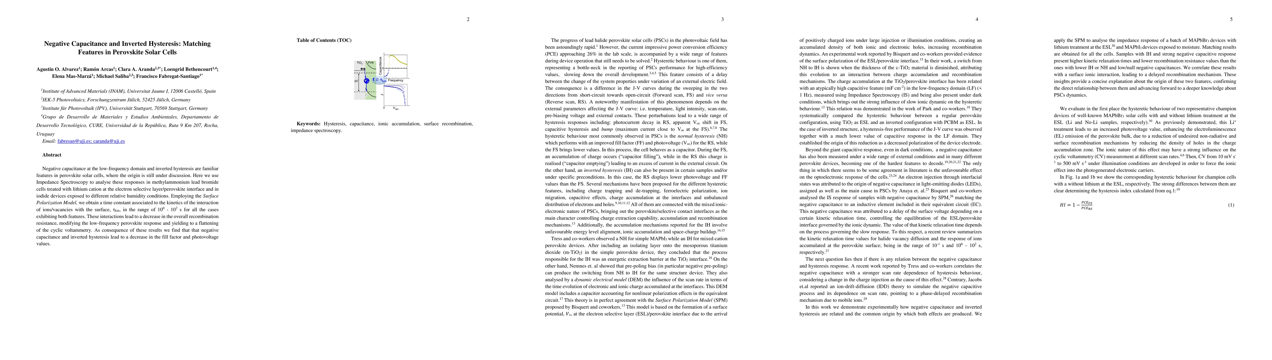 This paper investigates the origins of negative capacitance and inverted hysteresis in perovskite solar cells using Impedance Spectroscopy. It finds that these phenomena are linked to the kinetics of ion/vacancy interactions at the interface, leading to decreased recombination resistance and lower fill factor and photovoltage values.