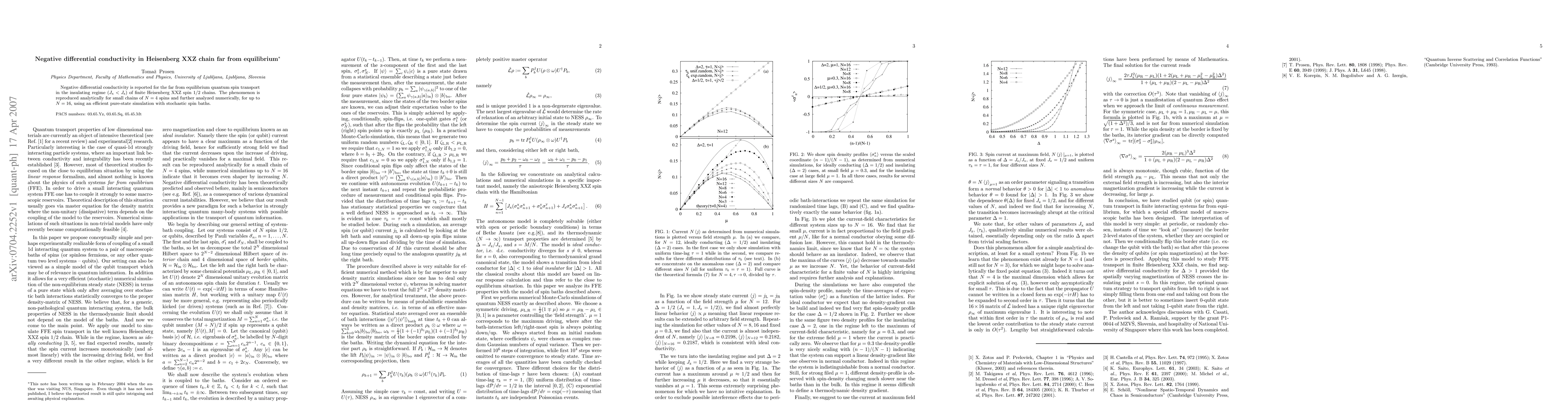 Negative differential conductivity is observed in the Heisenberg XXZ spin chains far from equilibrium, particularly in the insulating regime with J_x < J_z, as confirmed both analytically for small chains and numerically for larger ones using stochastic spin baths.