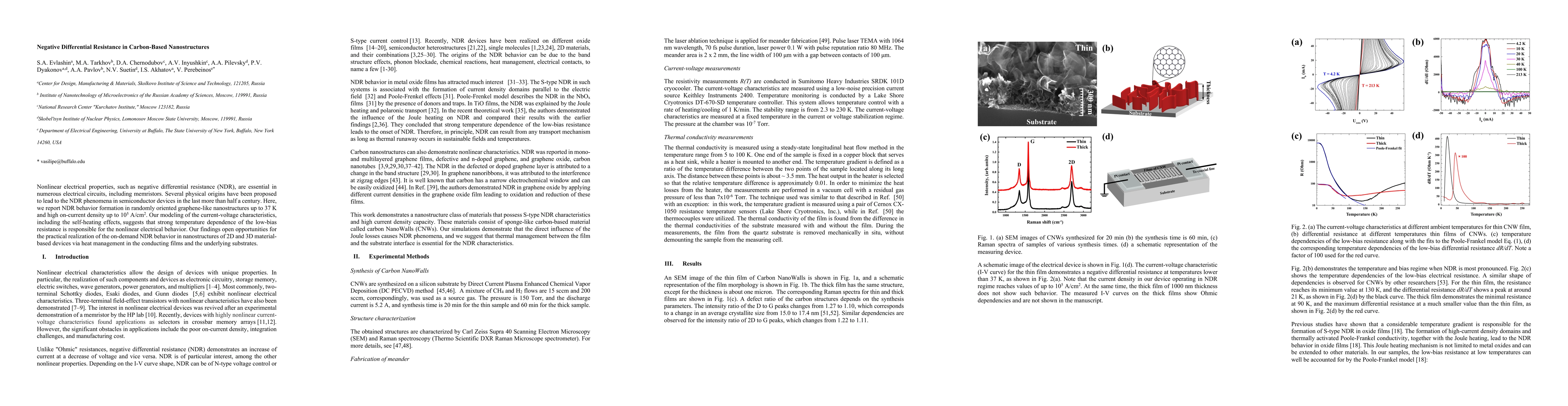 This research reports the occurrence of negative differential resistance (NDR) in randomly oriented graphene-like nanostructures, attributing the phenomenon to the strong temperature dependence of low-bias resistance. The findings suggest practical applications for NDR in next-generation 2D and 3D material-based devices through effective heat management.