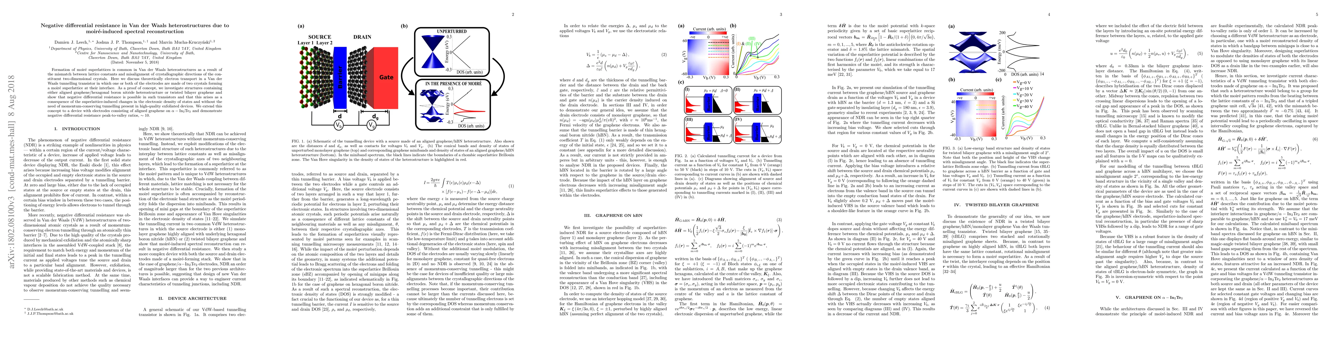 This paper theoretically explores electron transport in Van der Waals tunnelling transistors, revealing that negative differential resistance can occur due to moiré-induced spectral reconstruction in heterostructures like graphene/hexagonal boron nitride and twisted bilayer graphene, without requiring momentum-conserving tunnelling.