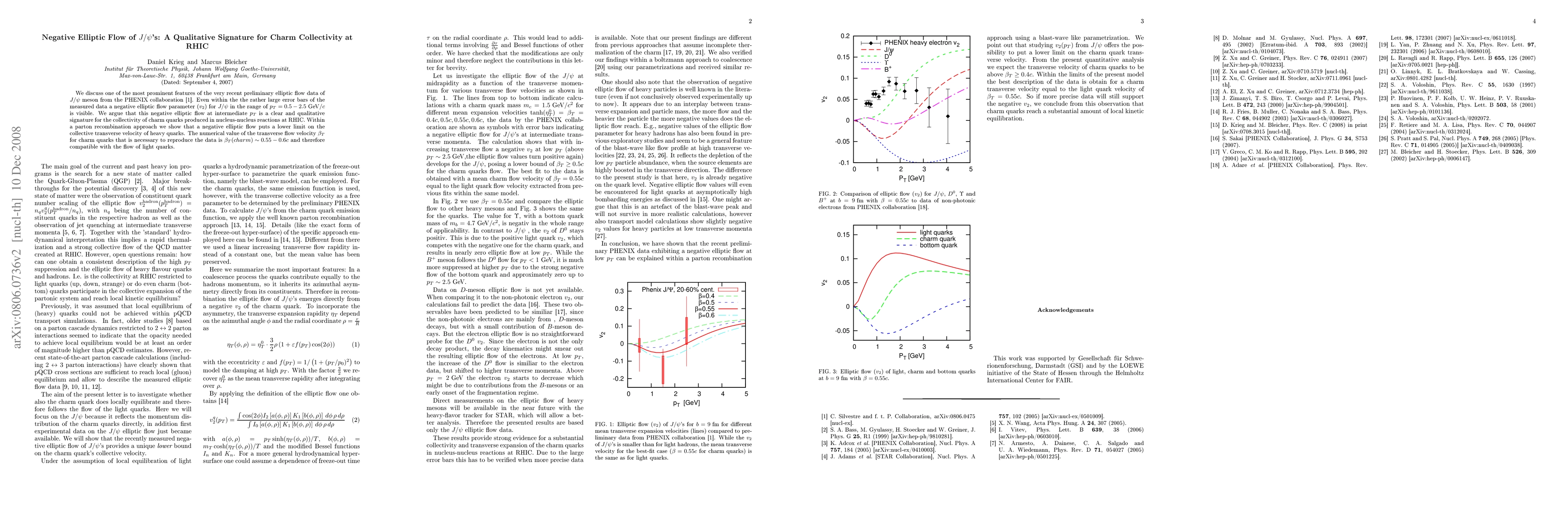 This paper discusses the negative elliptic flow of $J/\Psi$ mesons, indicating a qualitative signature of charm quark collectivity in RHIC nucleus-nucleus collisions. The observed negative elliptic flow parameter within $p_T$ range of $0.5-2.5 \GeV/c$ suggests a collective transverse velocity of charm quarks, estimated at $\beta_T \sim 0.55-0.6c$.