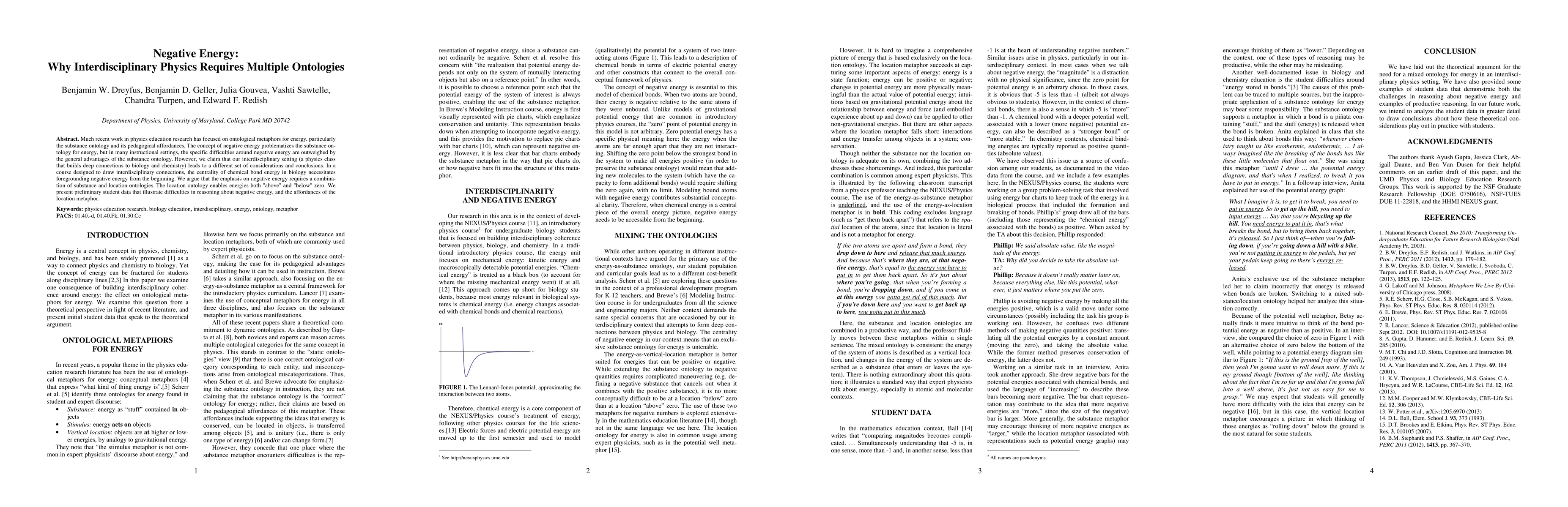 This paper argues that interdisciplinary physics education, particularly in courses integrating biology and chemistry, necessitates multiple ontologies for energy concepts, including both substance and location ontologies. The location ontology is crucial for understanding negative energy, which is central in chemical bond energy contexts.