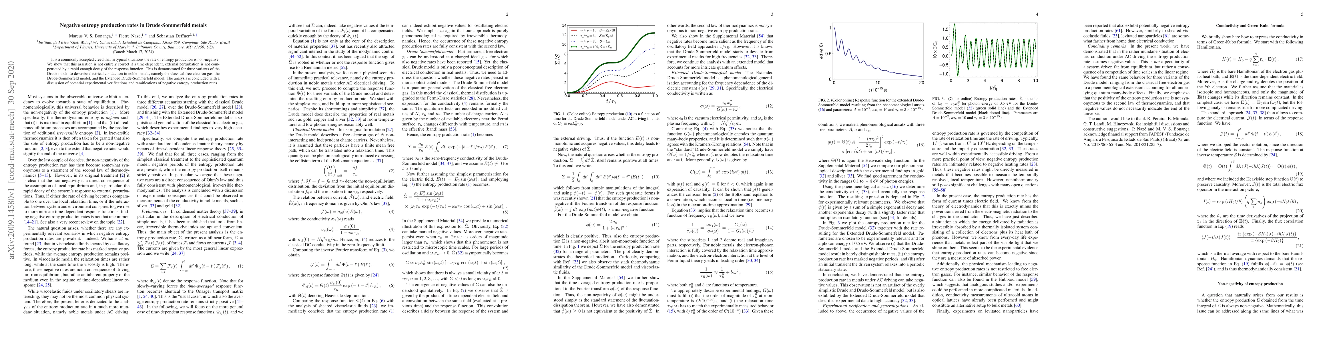 The paper presents a detailed theoretical analysis of entropy production rates in Drude-Sommerfeld metals under AC driving, demonstrating that negative values can occur due to the interplay of relaxation timescales and driving rates, and extends this analysis to the Extended Drude-Sommerfeld model.