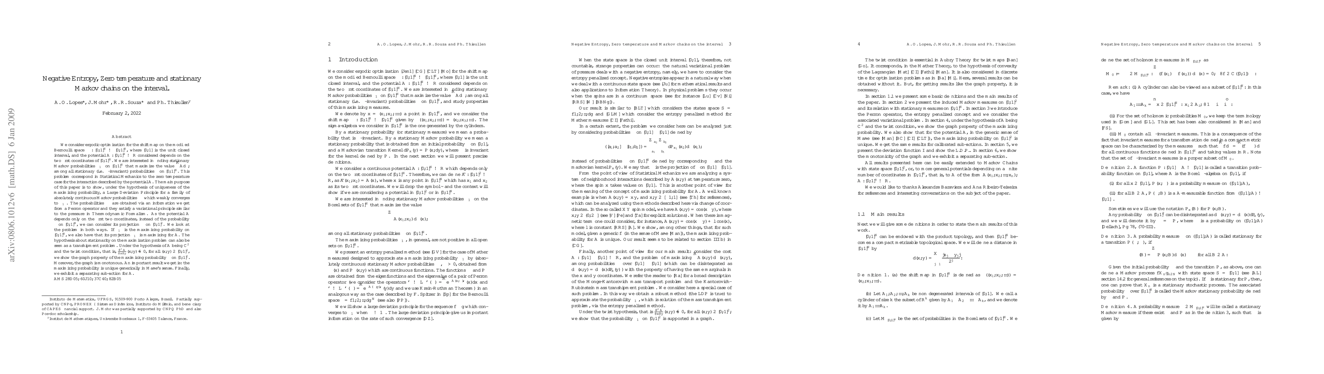 We analyze some properties of maximizing stationary Markov probabilities on the Bernoulli space $[0,1]^\mathbb{N}$, More precisely, we consider ergodic optimization for a continuous potential $A$, where $A: [0,1]^\mathbb{N}\to \mathbb{R}$ which depends only on the two first coordinates. We are interested in finding stationary Markov probabilities $\mu_\infty$ on $ [0,1]^\mathbb{N}$ that maximize the value $ \int A d \mu,$ among all stationary Markov probabilities $\mu$ on $[0,1]^\mathbb{N}$. This problem correspond in Statistical Mechanics to the zero temperature case for the interaction described by the potential $A$. The main purpose of this paper is to show, under the hypothesis of uniqueness of the maximizing probability, a Large Deviation Principle for a family of absolutely continuous Markov probabilities $\mu_\beta$ which weakly converges to $\mu_\infty$. The probabilities $\mu_\beta$ are obtained via an information we get from a Perron operator and they satisfy a variational principle similar to the pressure. Under the hypothesis of $A$ being $C^2$ and the twist condition, that is, $\frac{\partial^2 A}{\partial_x \partial_y} (x,y) \neq 0$, for all $(x,y) \in [0,1]^2$, we show the graph property.