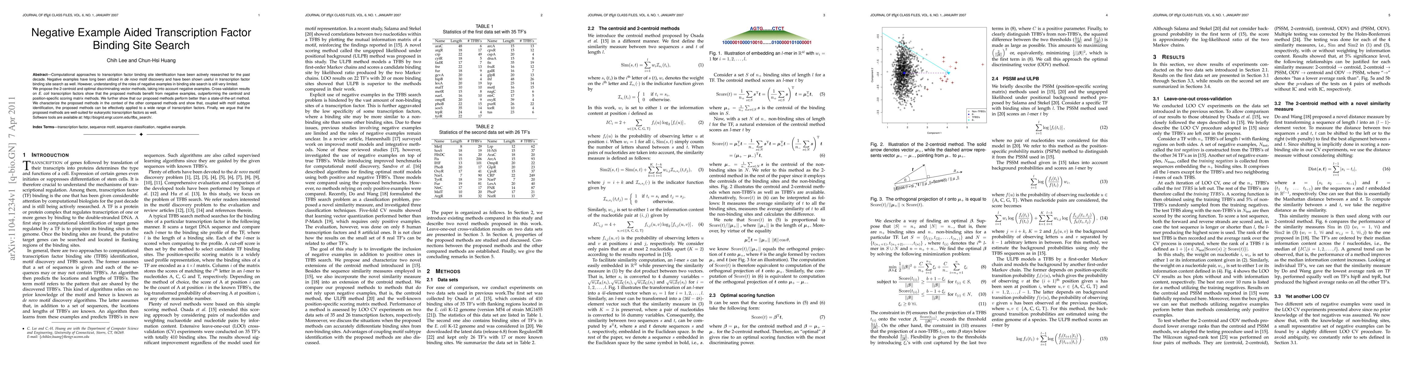 This research proposes two new methods that incorporate negative examples to improve transcription factor binding site search accuracy, outperforming existing methods in cross-validation results.