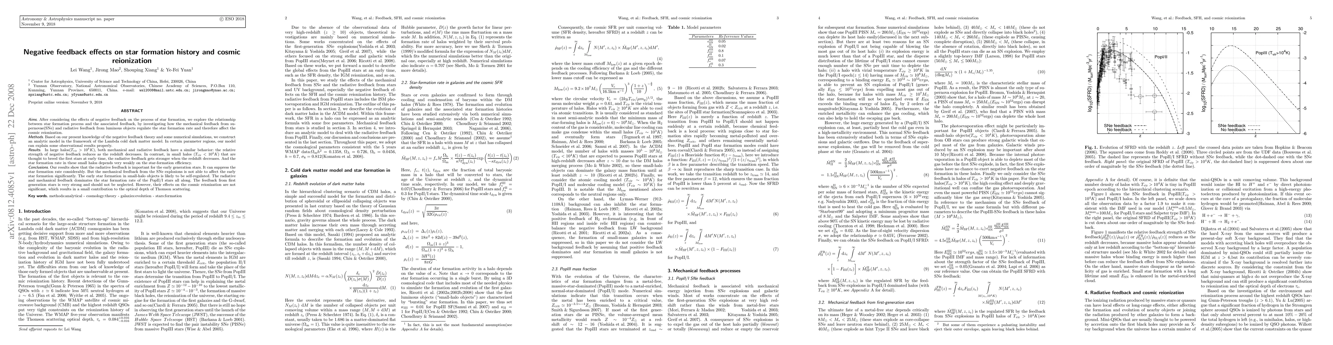 After considering the effects of negative feedback on the process of star formation, we explore the relationship between star formation process and the associated feedback, by investigating how the mechanical feedback from supernovae(SNe) and radiative feedback from luminous objects regulate the star formation rate and therefore affect the cosmic reionization.Based on our present knowledge of the negative feedback theory and some numerical simulations, we construct an analytic model in the framework of the Lambda cold dark matter model. In certain parameter regions, our model can explain some observational results properly. In large halos(T_vir>10000 K), both mechanical and radiative feedback have a similar behavior: the relative strength of negative feedback reduces as the redshift decreases. In contrast, in small halos (T_vir<10000 K$) that are thought to breed the first stars at early time, the radiative feedback gets stronger when the redshift decreases. And the star formation rate in these small halos depends very weakly on the star-formation efficiency. Our results show that the radiative feedback is important for the early generation stars. It can suppress the star formation rate considerably. But the mechanical feedback from the SNe explosions is not able to affect the early star formation significantly. The early star formation in small-halo objects is likely to be self-regulated. The radiative and mechanical feedback dominates the star formation rate of the PopII/I stars all along. The feedback from first generation stars is very strong and should not be neglected. However, their effects on the cosmic reionization are not significant, which results in a small contribution to the optical depth of Thomson scattering.