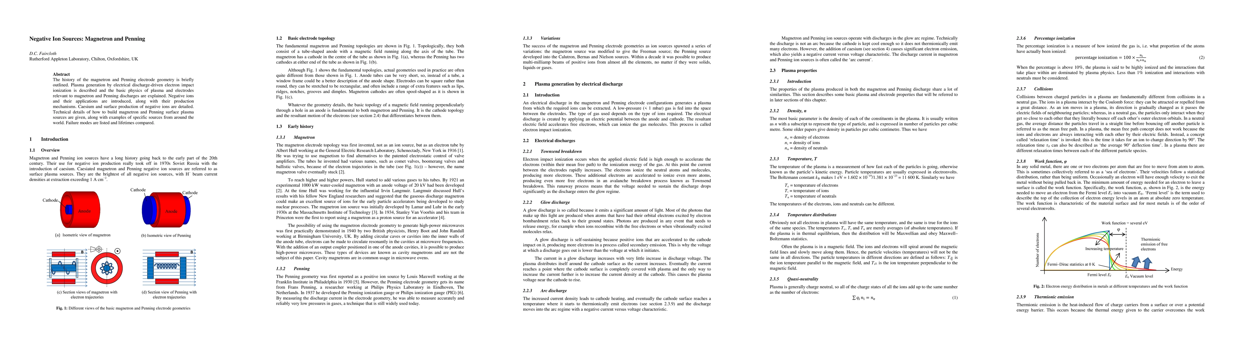 The history of the magnetron and Penning electrode geometry is briefly outlined. Plasma generation by electrical discharge-driven electron impact ionization is described and the basic physics of plasma and electrodes relevant to magnetron and Penning discharges are explained. Negative ions and their applications are introduced, along with their production mechanisms. Caesium and surface production of negative ions are detailed. Technical details of how to build magnetron and Penning surface plasma sources are given, along with examples of specific sources from around the world. Failure modes are listed and lifetimes compared.