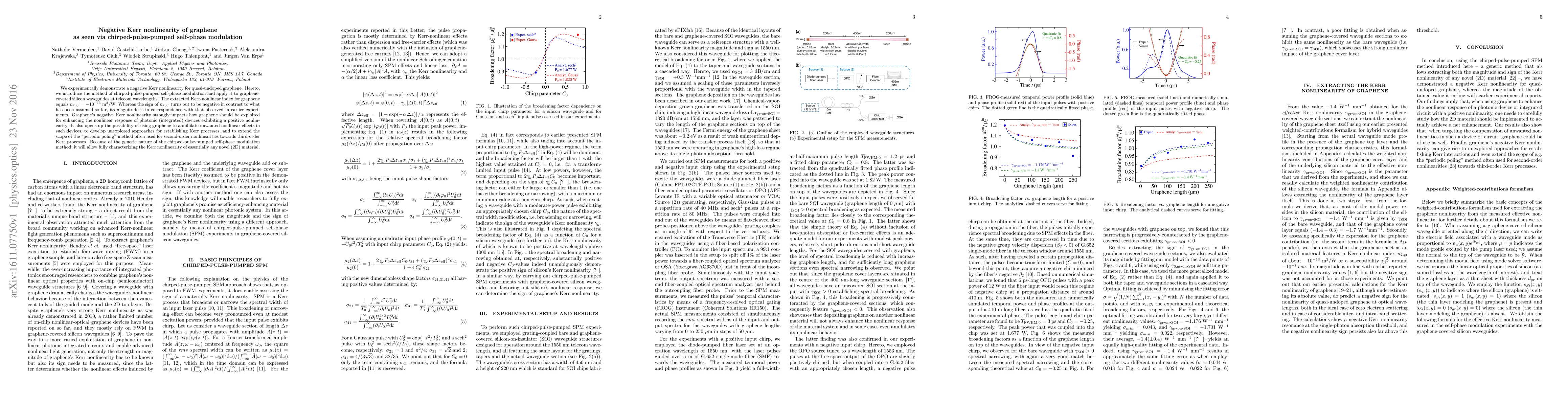 This paper demonstrates a negative Kerr nonlinearity in quasi-undoped graphene using chirped-pulse-pumped self-phase modulation, revealing a Kerr-nonlinear index of n2,gr = -10^(-13) m^2/W. This finding challenges previous assumptions and suggests new applications for graphene in photonic devices.