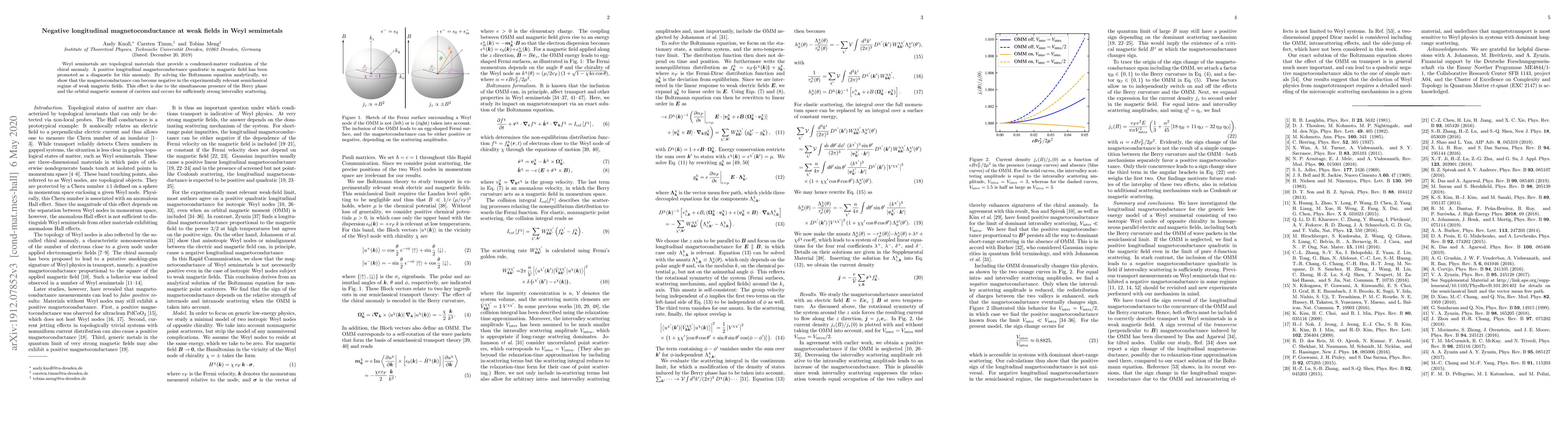 Weyl semimetals exhibit negative longitudinal magnetoconductance in weak magnetic fields due to the interplay of Berry phase and orbital magnetic moment, challenging the conventional positive magnetoconductance linked to the chiral anomaly. This effect is prominent in the semiclassical regime with strong intervalley scattering.