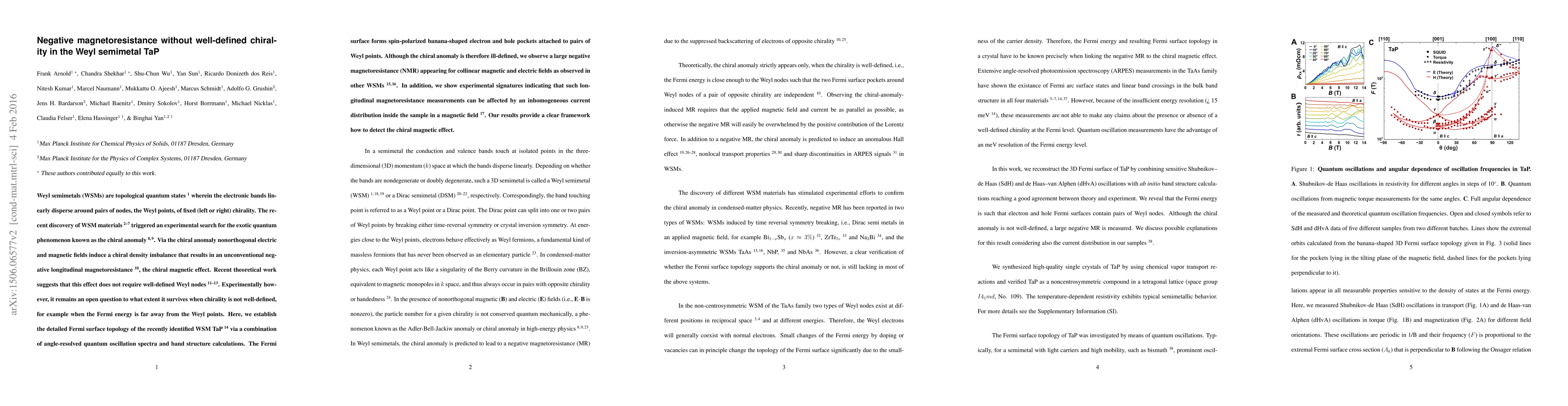 Researchers discovered a negative magnetoresistance in TaP, a Weyl semimetal, despite undefined chirality, and found experimental signatures of the chiral magnetic effect, providing a framework for its detection.