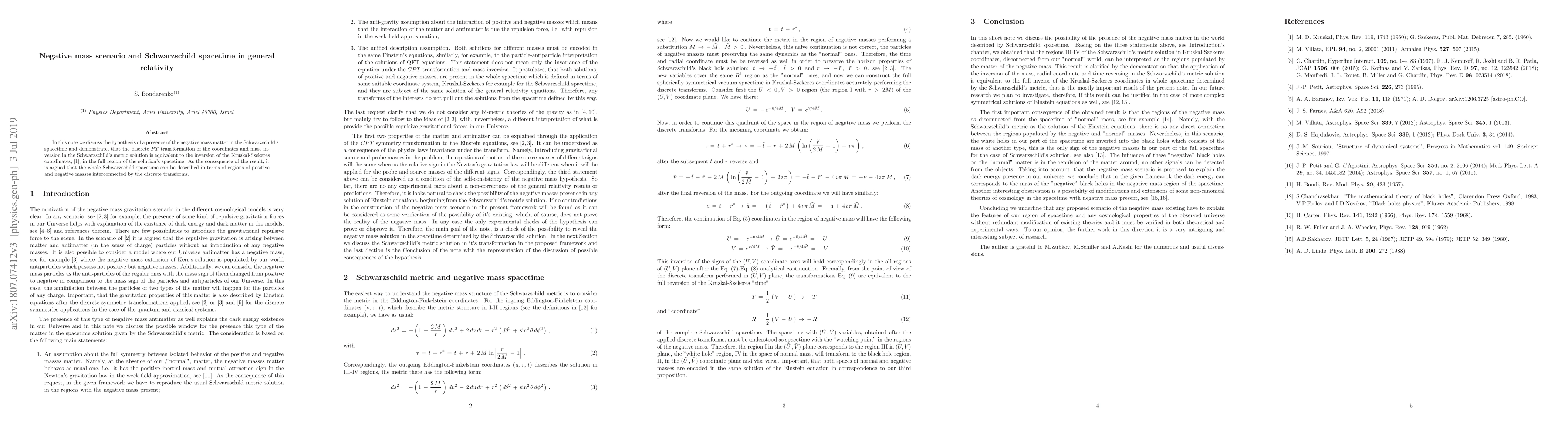 Researchers explored the possibility of negative mass in general relativity's Schwarzschild spacetime, finding a connection between discrete transformations and inversion of Kruskal-Szekeres coordinates. The study suggests that the entire spacetime can be described as regions of positive and negative masses interconnected by these transformations.