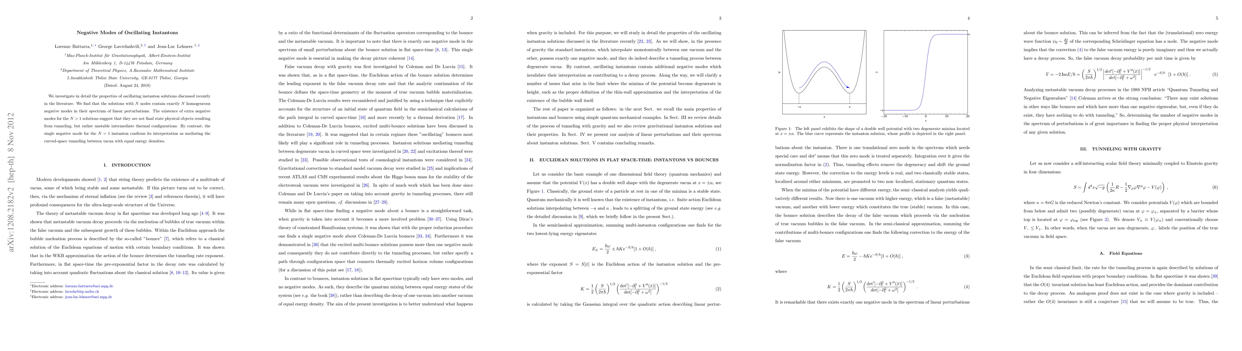 This paper explores oscillating instanton solutions, revealing that N-node solutions possess exactly N homogeneous negative modes, indicating they are unstable intermediate states rather than tunneling endpoints. The N=1 instanton, with a single negative mode, is confirmed as a mediator for tunneling between energy-equal vacua.