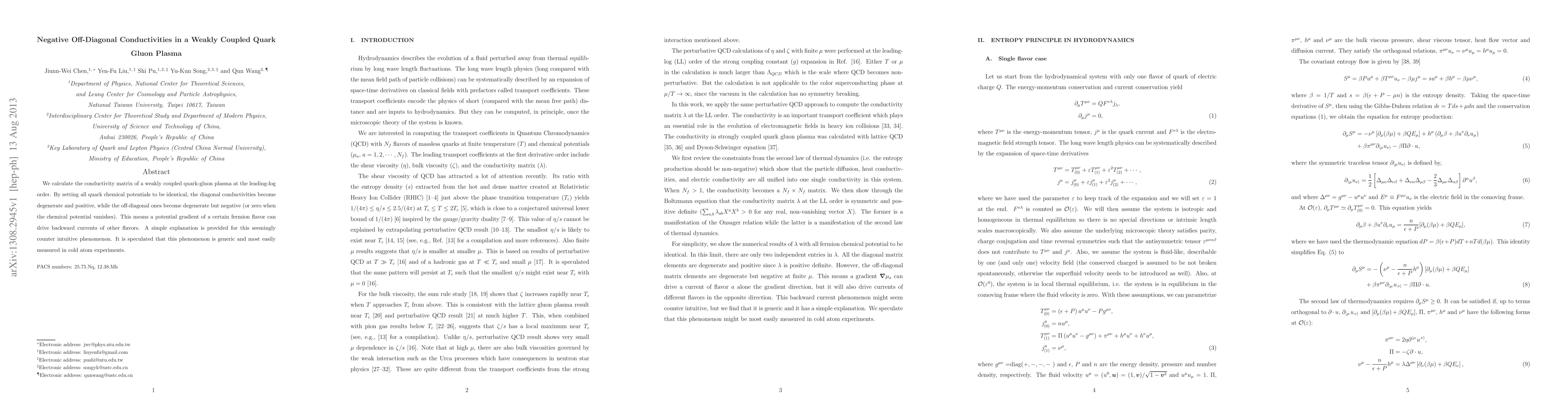 This paper investigates the conductivity matrix of a weakly coupled quark-gluon plasma, finding that while diagonal conductivities are positive, off-diagonal conductivities are negative or zero, suggesting that gradients in one fermion flavor can induce currents in other flavors. This counterintuitive behavior is speculated to be generic and potentially observable in cold atom experiments.