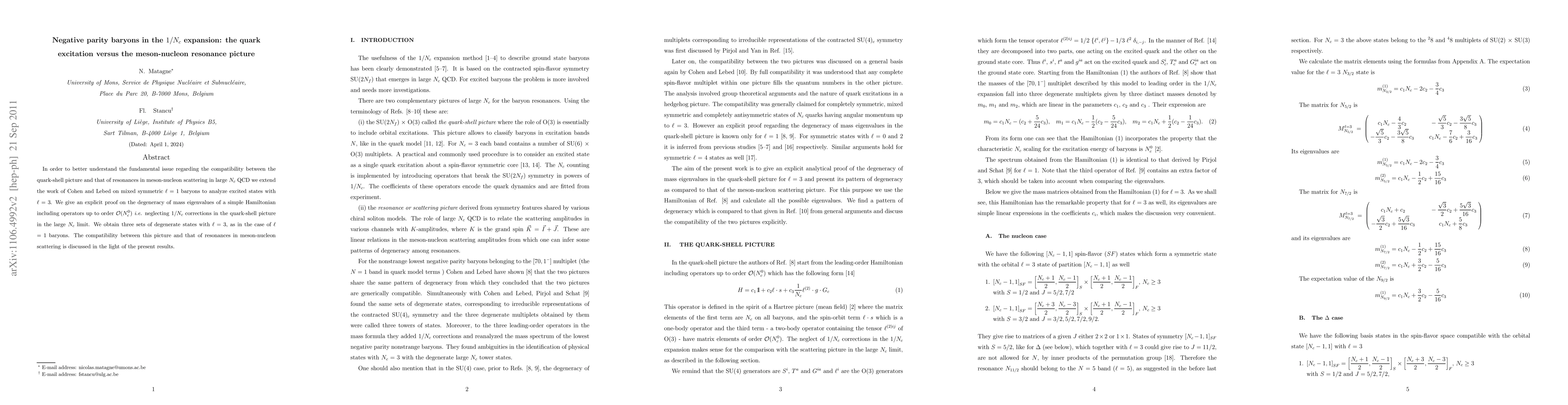 This paper explores the compatibility of quark-shell and meson-nucleon resonance pictures in large N_c QCD by extending previous work on mixed symmetric baryons. The authors prove mass degeneracy of $ell$ = 3 excited states in the quark-shell model, neglecting $1/N_c$ corrections, leading to three degenerate multiplets. The findings discuss the implications for understanding resonances in meson-nucleon scattering.