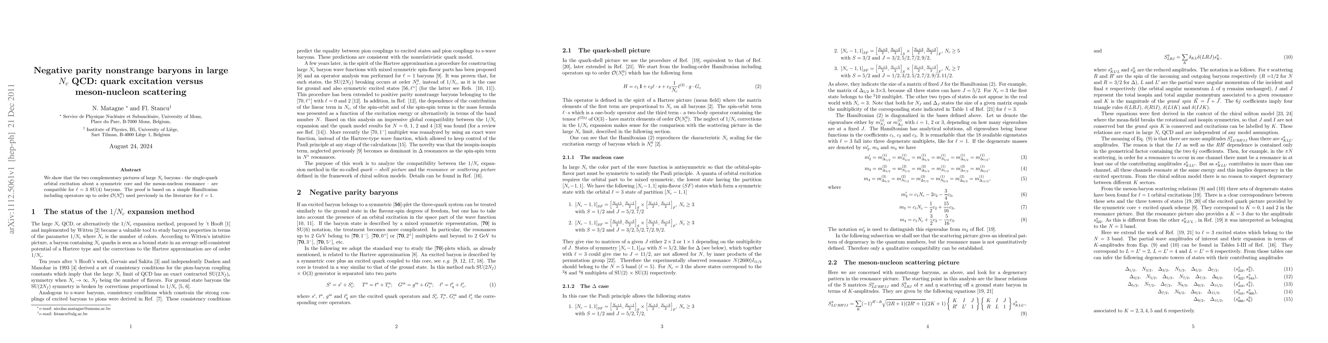 We show that the two complementary pictures of large $N_c$ baryons - the single-quark orbital excitation about a symmetric core and the meson-nucleon resonance -- are compatible for $\ell$ = 3 SU(4) baryons. The proof is based on a simple Hamiltonian including operators up to order $\mathcal{O}(N^0_c)$ used previously in the literature for $\ell$ = 1.