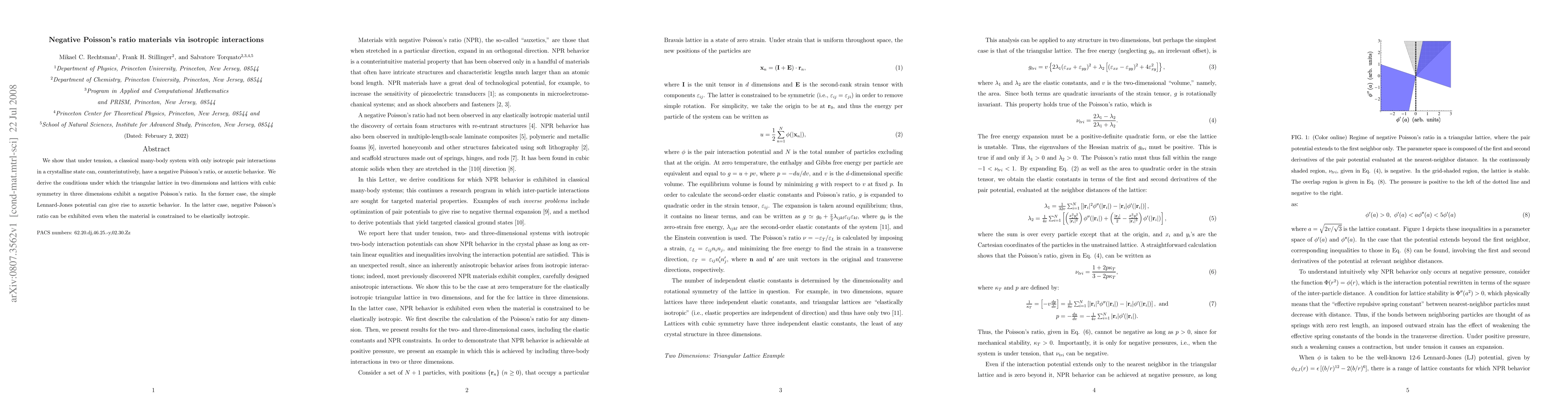 We show that under tension, a classical many-body system with only isotropic pair interactions in a crystalline state can, counterintutively, have a negative Poisson's ratio, or auxetic behavior. We derive the conditions under which the triangular lattice in two dimensions and lattices with cubic symmetry in three dimensions exhibit a negative Poisson's ratio. In the former case, the simple Lennard-Jones potential can give rise to auxetic behavior. In the latter case, negative Poisson's ratio can be exhibited even when the material is constrained to be elastically isotropic.