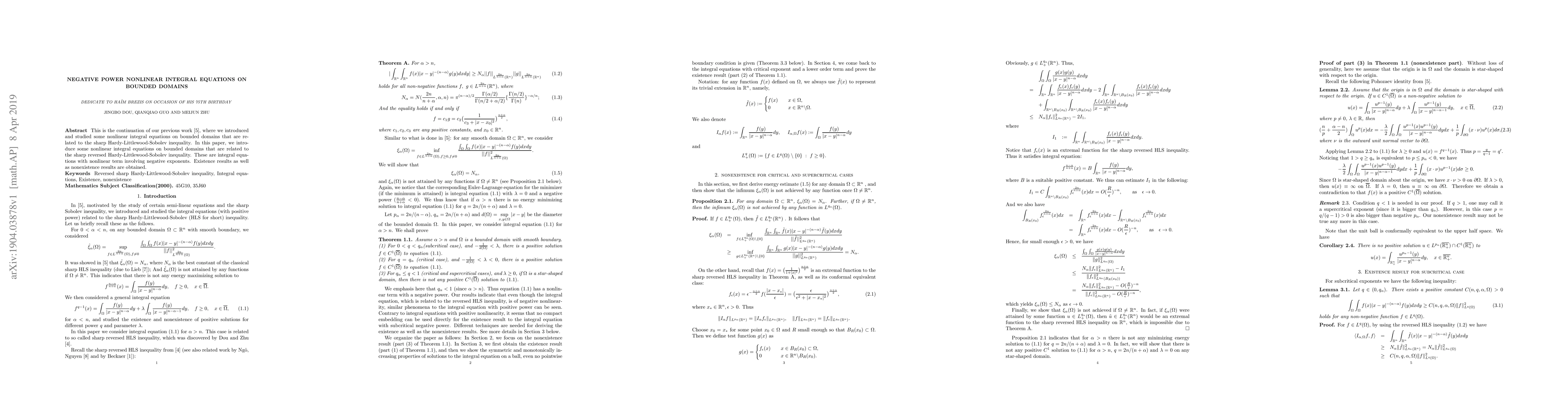 This paper extends previous research on nonlinear integral equations related to the sharp Hardy-Littlewood-Sobolev inequality by introducing new equations tied to the sharp reversed Hardy-Littlewood-Sobolev inequality, featuring nonlinear terms with negative exponents, and provides both existence and nonexistence results.