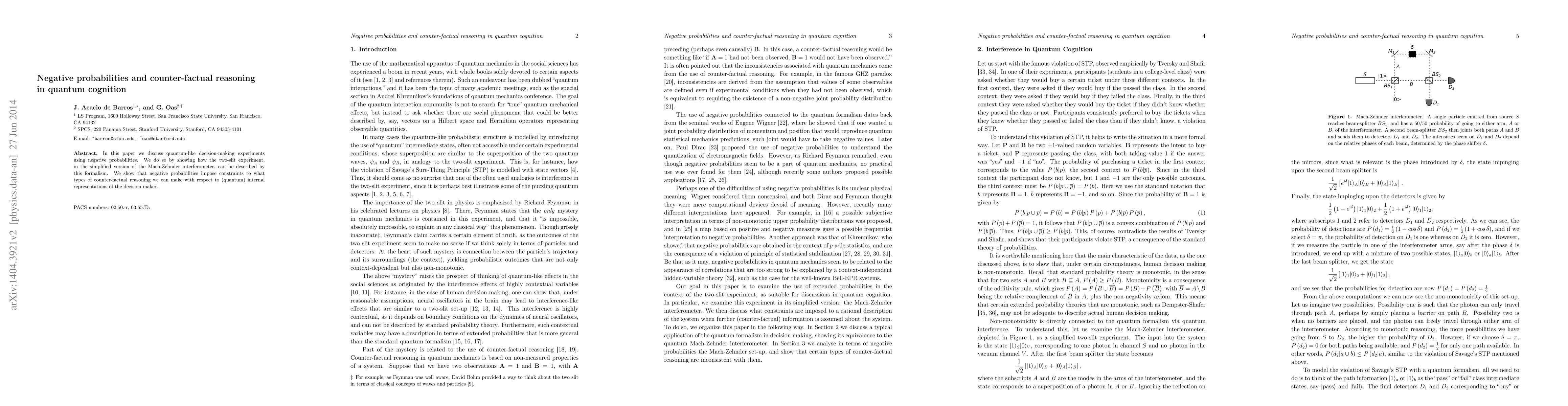 This paper explores quantum-like decision-making through negative probabilities, using the Mach-Zehnder interferometer as a model. It demonstrates how these probabilities limit the types of counter-factual reasoning possible in quantum internal representations.