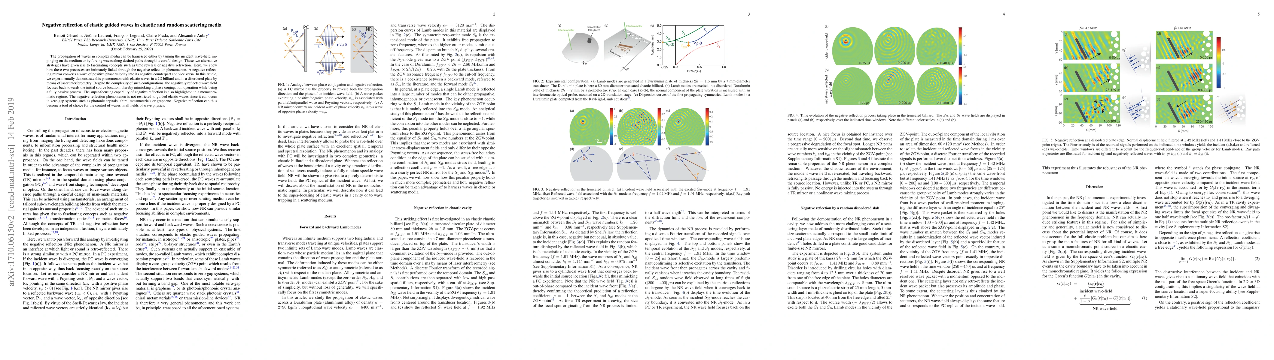 This paper demonstrates experimentally the negative reflection phenomenon in elastic guided waves within chaotic and random scattering media, showing how it can convert wave phase velocities and focus wave fields back to the source location. This passive process, applicable to various wave systems, offers a new tool for wave control in physics.