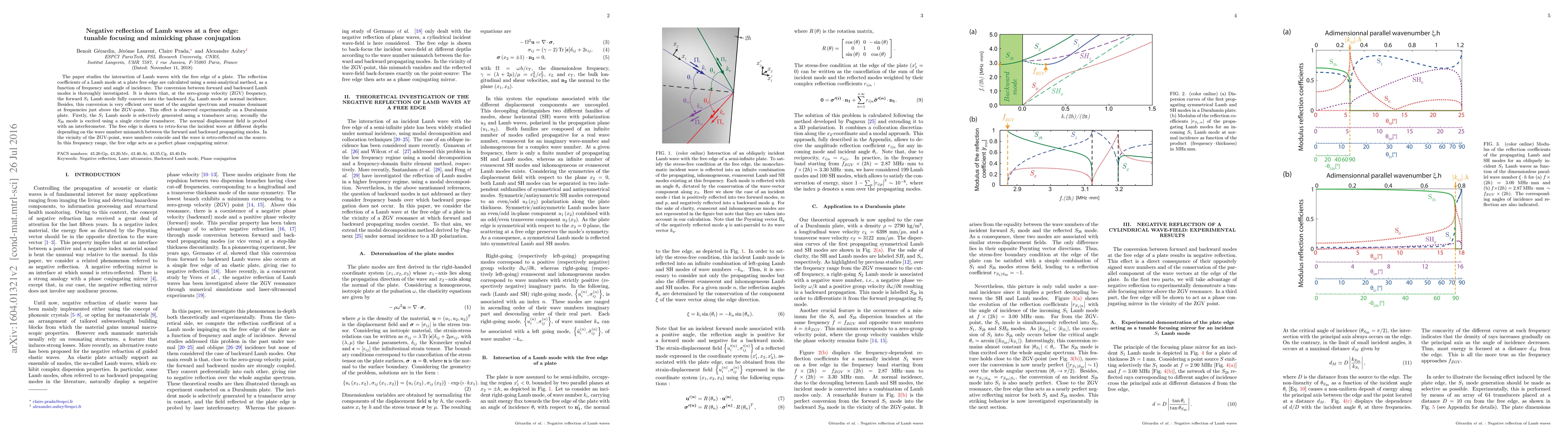This paper investigates Lamb wave reflection at a free plate edge, demonstrating tunable focusing and mimicking phase conjugation at zero-group velocity. Experimental results show efficient conversion between forward and backward Lamb modes, with retro-focusing and near-perfect phase conjugation at specific frequencies.