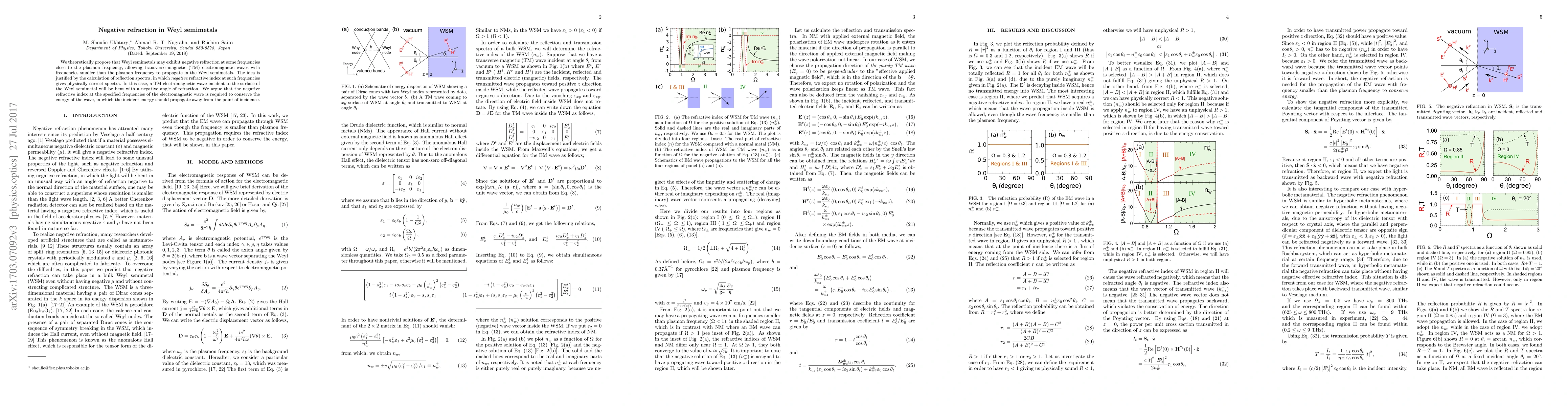 Weyl semimetals can exhibit negative refraction for transverse magnetic waves near the plasmon frequency, resulting in a negative refractive index and waves bending away from the point of incidence to conserve wave energy. This phenomenon is demonstrated through calculated reflection spectra showing physically correct refraction behavior.