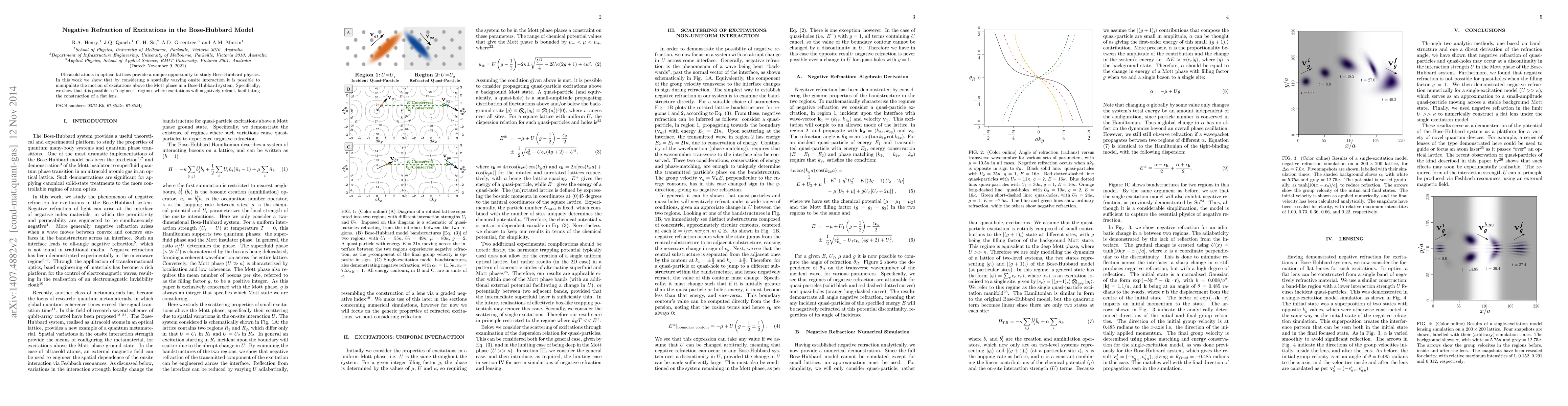 Ultracold atoms in optical lattices provide a unique opportunity to study Bose- Hubbard physics. In this work we show that by considering a spatially varying onsite interaction it is possible to manipulate the motion of excitations above the Mott phase in a Bose-Hubbard system. Specifically, we show that it is possible to "engineer" regimes where excitations will negatively refract, facilitating the construction of a flat lens.