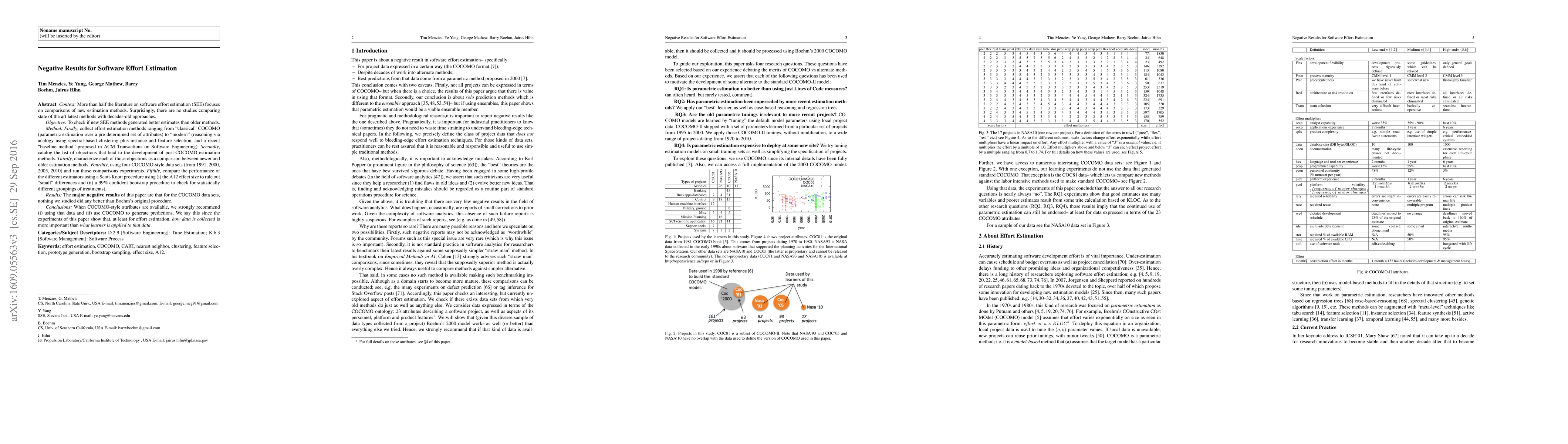 A study found that state-of-the-art software effort estimation methods did not outperform decades-old approaches like COCOMO in estimating project effort. Using available data is more important than applying a specific learner to achieve accurate estimates.