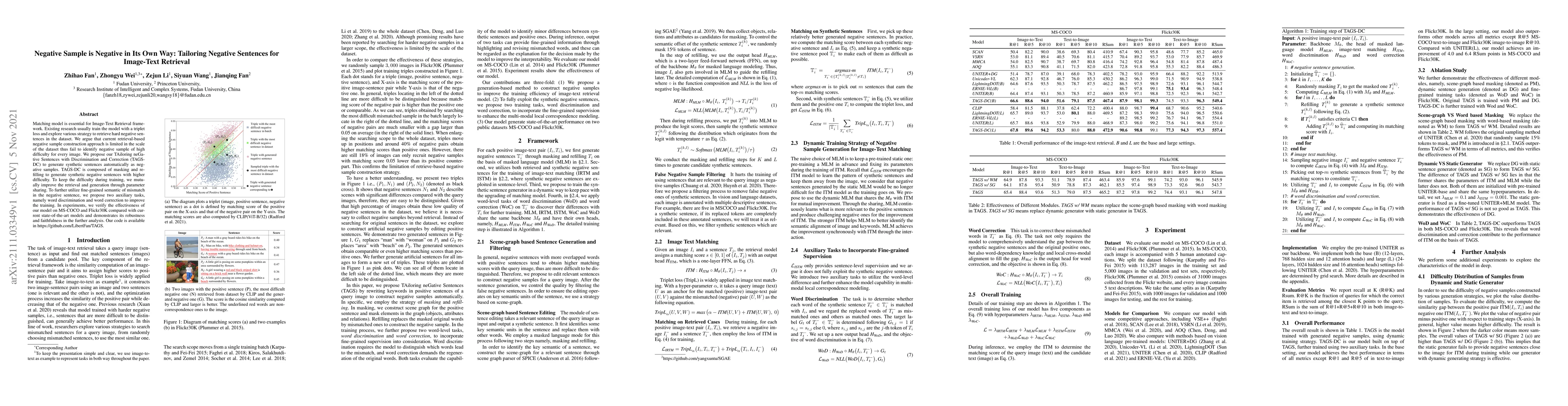 The paper proposes TAGS-DC, a method to generate synthetic negative sentences for training image-text retrieval models, addressing the limitation of existing retrieval-based negative sample construction. The approach uses masking and refilling to create difficult negative samples and employs auxiliary tasks for fine-grained semantic mismatch, demonstrating improved performance on MS-COCO and Flickr30K datasets.