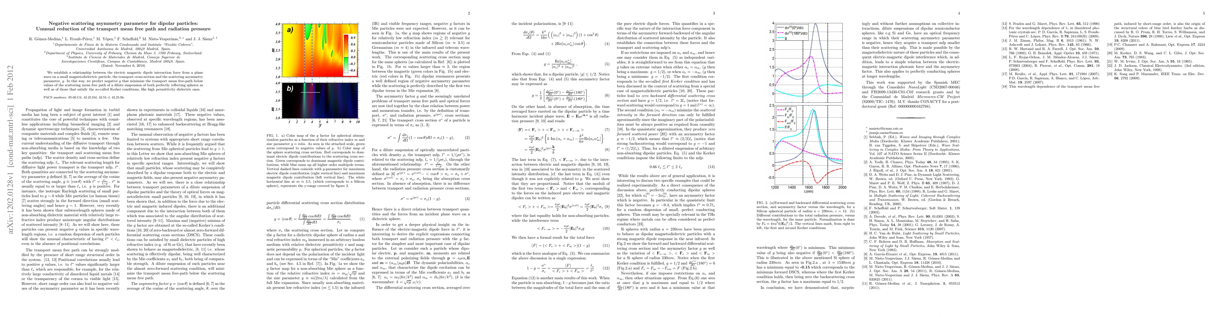 This paper explores the relationship between electric magnetic dipole interactions and scattering asymmetry parameters, predicting negative asymmetry that significantly reduces the transport mean free path in dipolar particles, even below that of perfectly reflecting spheres. This finding has implications for understanding radiation pressure in magnetodielectric suspensions.