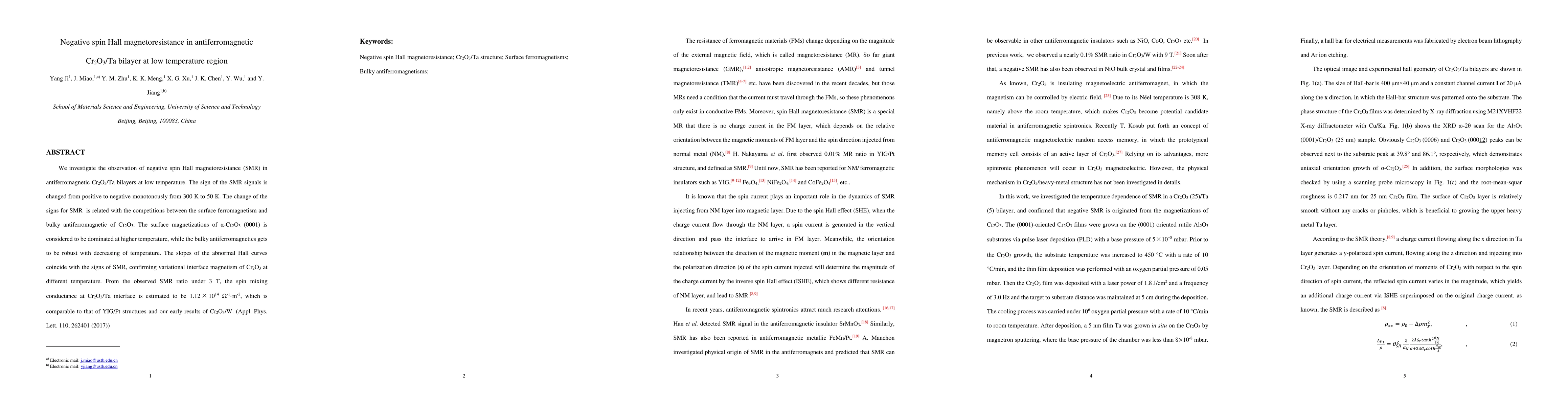 The novelty of this work lies in the observation and explanation of negative SMR in antiferromagnetic Cr2O3/Ta bilayers at low temperatures, providing insights into interface magnetism and its potential applications in spintronics.