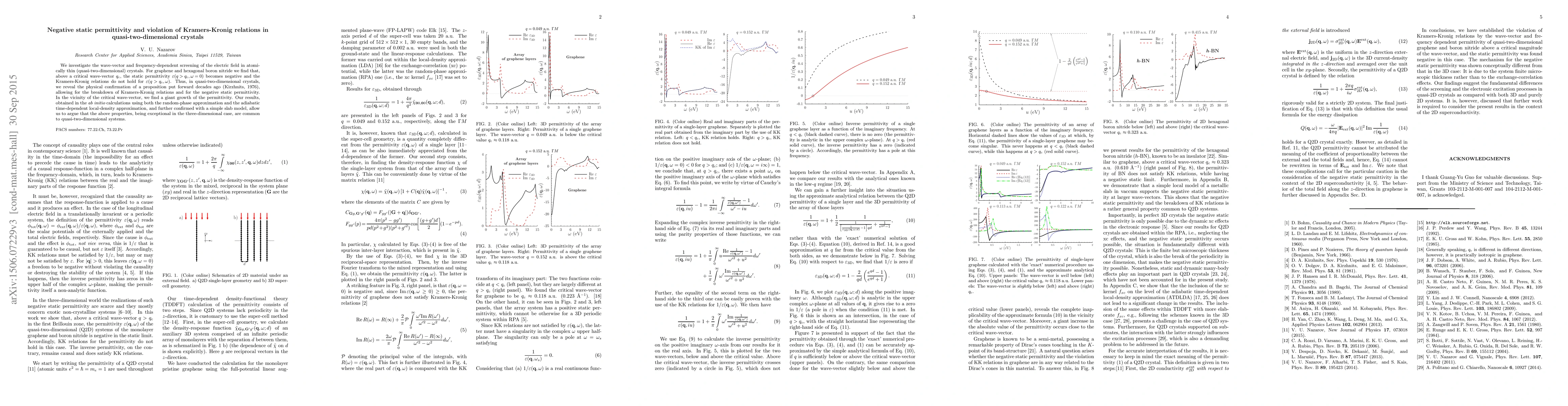 This research reveals that quasi-two-dimensional crystals like graphene and hexagonal boron nitride exhibit negative static permittivity and violate Kramers-Kronig relations above a critical wave-vector, confirming a decades-old theoretical proposition and demonstrating these properties are common in such systems.