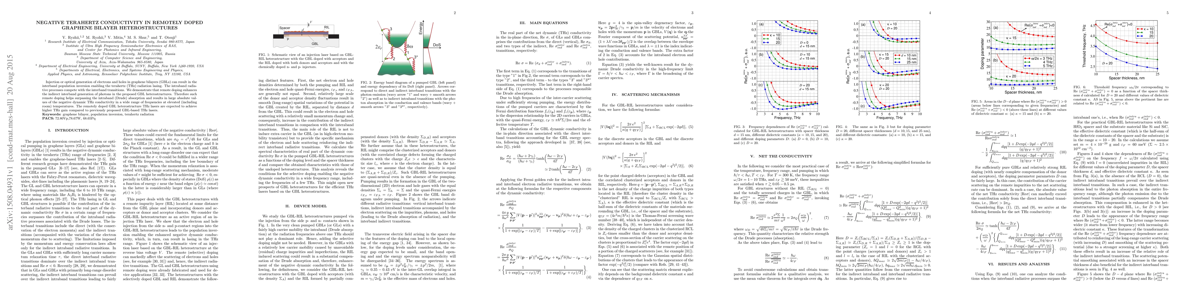 This paper demonstrates that remote doping in graphene bilayer heterostructures enhances interband photon generation, leading to large negative dynamic terahertz conductivity and surpassing intraband absorption. Such doping is expected to improve terahertz gain in THz lasers compared to previous designs.