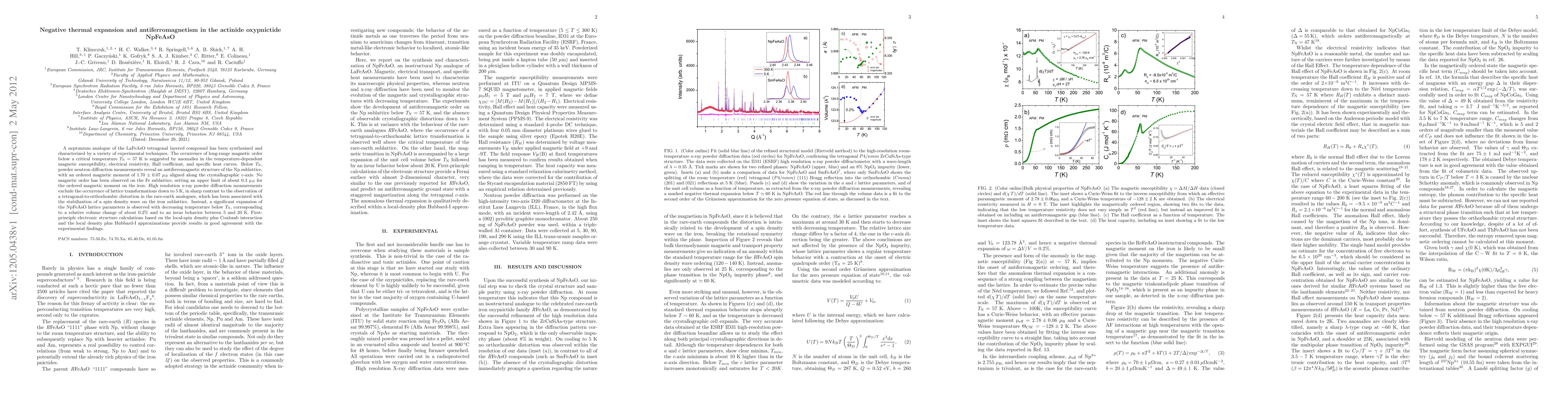 A neptunium analogue of the LaFeAsO tetragonal layered compound has been synthesized and characterized by a variety of experimental techniques. The occurrence of long-range magnetic order below a critical temperature T_N = 57 K is suggested by anomalies in the temperature-dependent magnetic susceptibility, electrical resistivity, Hall coefficient, and specific heat curves. Below T_N, powder neutron diffraction measurements reveal an antiferromagnetic structure of the Np sublattice, with an ordered magnetic moment of 1.70(0.07) \mu_B aligned along the crystallographic c-axis. No magnetic order has been observed on the Fe sublattice, setting an upper limit of about 0.3 \mu_B for the ordered magnetic moment on the iron. High resolution x-ray powder diffraction measurements exclude the occurrence of lattice transformations down to 5 K, in sharp contrast to the observation of a tetragonal-to-orthorhombic distortion in the rare-earth analogues, which has been associated with the stabilization of a spin density wave on the iron sublattice. Instead, a significant expansion of the NpFeAsO lattice parameters is observed with decreasing temperature below T_N, corresponding to a relative volume change of about 0.2% and to an invar behavior between 5 and 20 K. First-principle electronic structure calculations based on the local-spin density plus Coulomb interaction and the local density plus Hubbard-I approximations provide results in good agreement with the experimental findings.