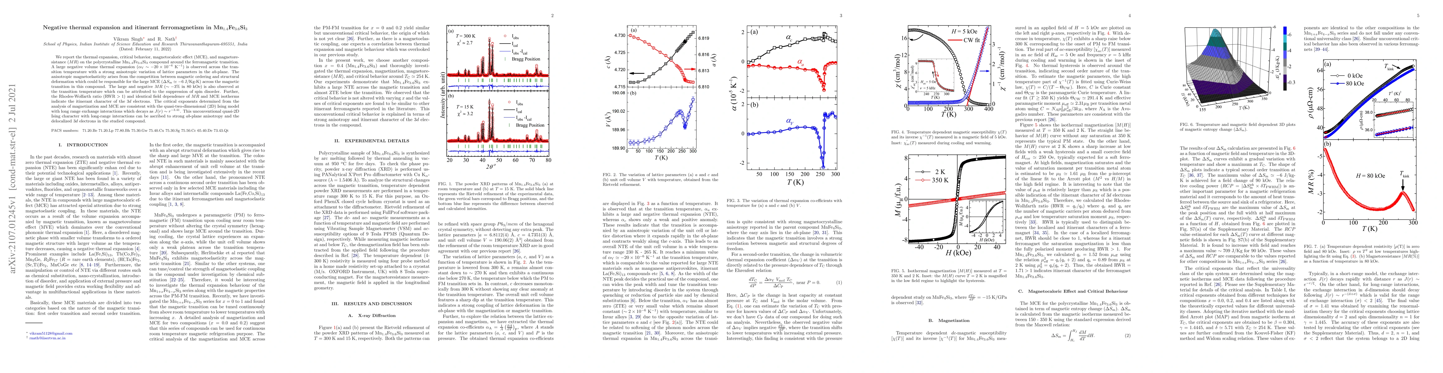 This study investigates Mn$_{1.4}$Fe$_{3.6}$Si$_{3}$, revealing significant negative thermal expansion and itinerant ferromagnetism. The compound exhibits a large negative volume thermal expansion and a strong magnetocaloric effect, indicative of anisotropic magnetoelasticity due to the interplay between magnetic and structural phases.