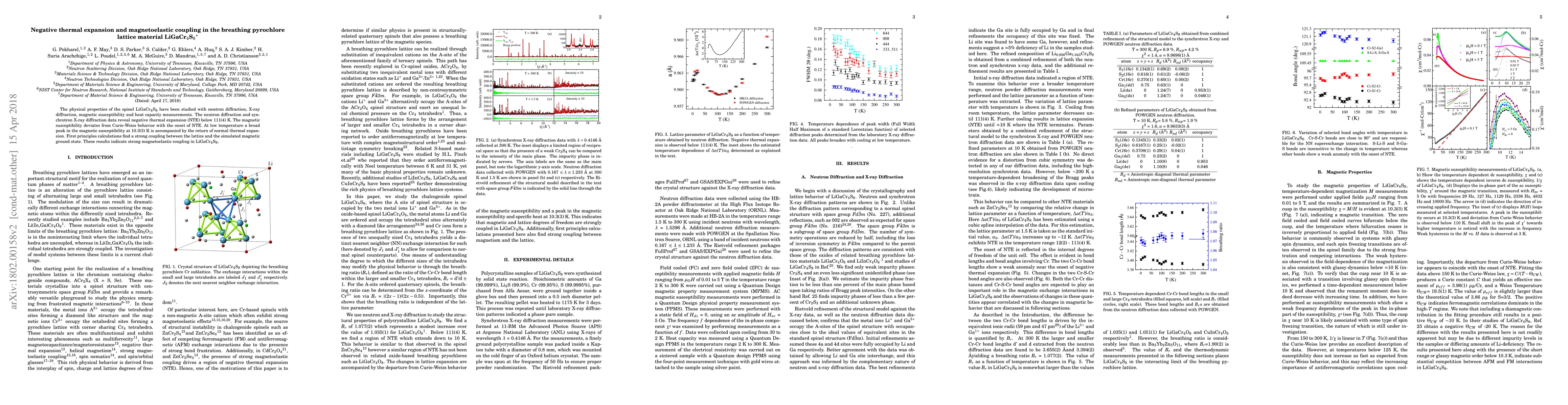 This study investigates LiGaCr4S8, revealing negative thermal expansion below 111 K and strong magnetoelastic coupling, evidenced by a broad peak in magnetic susceptibility at 10.3 K, accompanied by a return to normal thermal expansion. First principles calculations support the observed coupling between lattice dynamics and magnetic behavior.