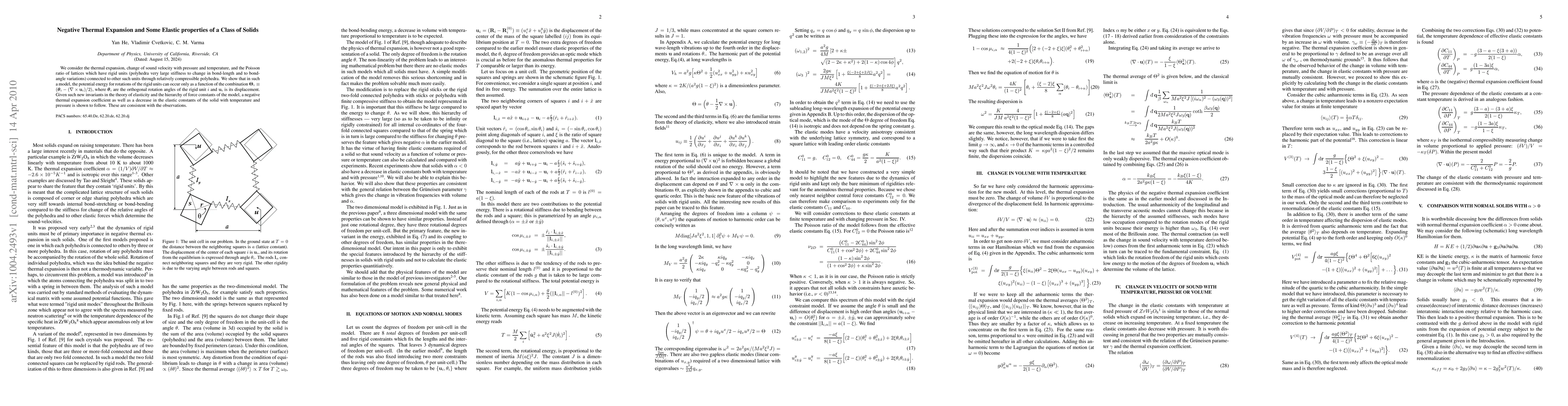 We consider the thermal expansion, change of sound velocity with pressure and temperature, and the Poisson ratio of lattices which have rigid units (polyhedra very large stiffness to change in bond-length and to bond-angle variations) connected to other such units through relatively compressible polyhedra. We show that in such a model, the potential energy for rotations of the rigid units can occur only as a function of the combination ${\boldsymbol \Theta}_i \equiv ({\boldsymbol \theta}_i - (\nabla \times {\bf u}_i)/2)$, where ${\boldsymbol \theta_i} $ are the orthogonal rotation angles of the rigid unit $i$ and ${\bf u}_i$ is its displacement. Given such new invariants in the theory of elasticity and the hierarchy of force constants of the model, a negative thermal expansion coefficient as well as a decrease in the elastic constants of the solid with temperature and pressure is shown to follow. These are consistent with the observations.