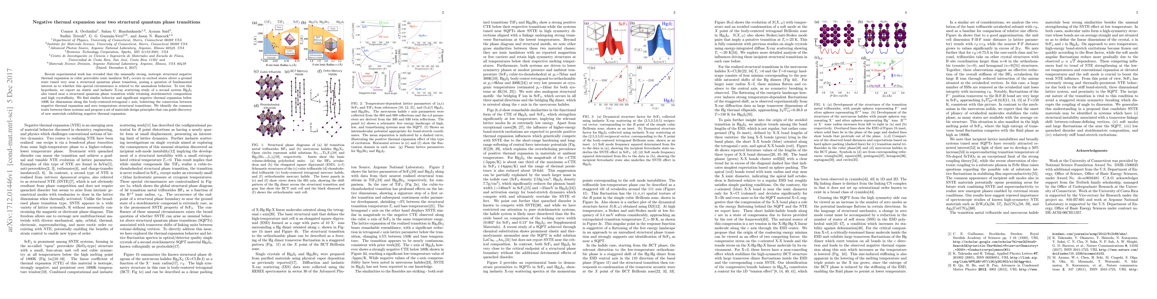 This paper investigates the relationship between negative thermal expansion and structural quantum phase transitions in cubic perovskite ionic insulator ScF3 and another material, Hg2I2, both near such transitions. The study reveals significant negative thermal expansion in Hg2I2, supporting the hypothesis that negative thermal expansion is linked to structural quantum phase transitions, and proposes design principles for discovering new materials with similar properties.
