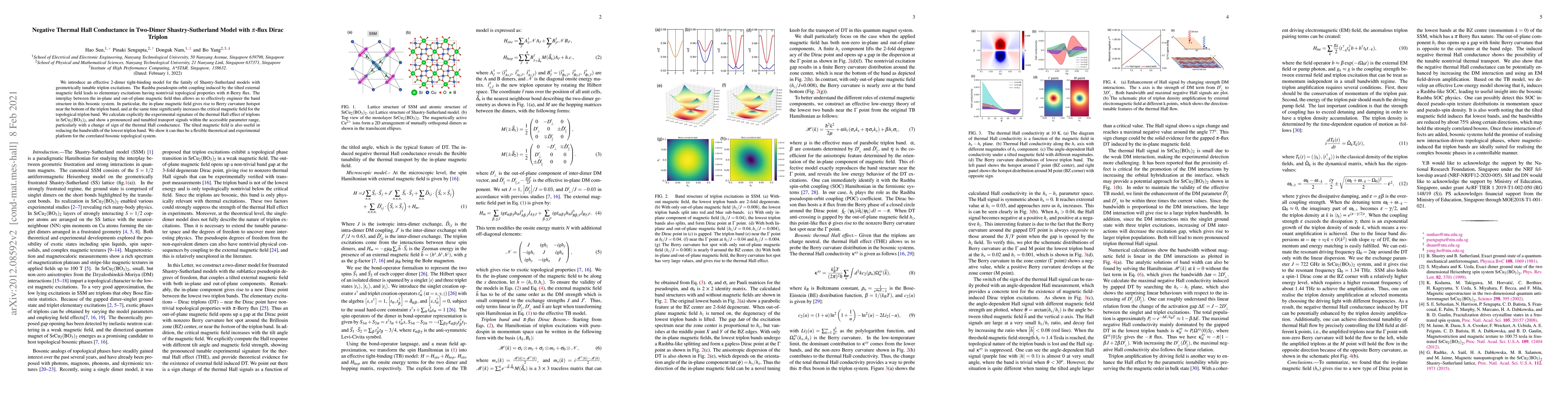 This paper investigates a two-dimer Shastry-Sutherland model with {\pi}-flux Dirac triplons, revealing a tunable negative thermal Hall conductance due to Rashba pseudospin-orbit coupling. The study highlights the significant impact of magnetic fields on the topological properties and band structure, offering a flexible platform for correlated bosonic systems.