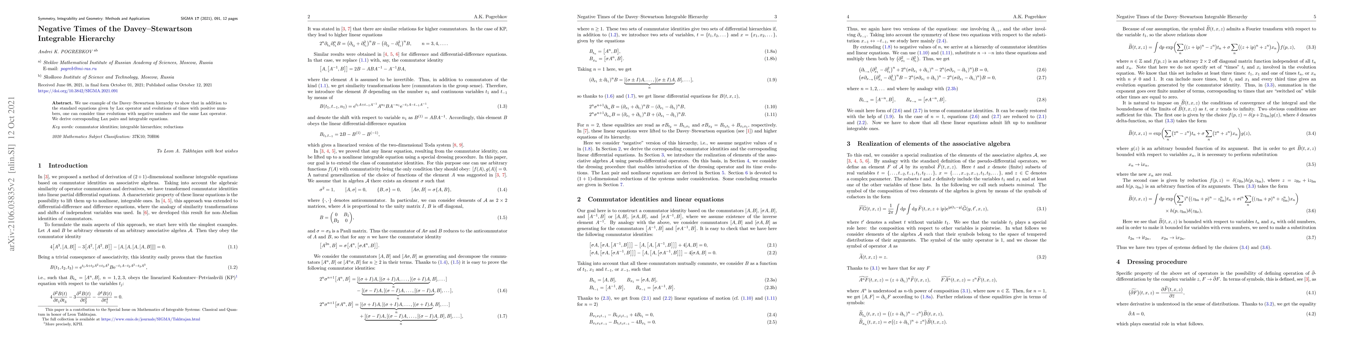 We use example of the Davey-Stewartson hierarchy to show that in addition to the standard equations given by Lax operator and evolutions of times with positive numbers, one can consider time evolutions with negative numbers and the same Lax operator. We derive corresponding Lax pairs and integrable equations.
