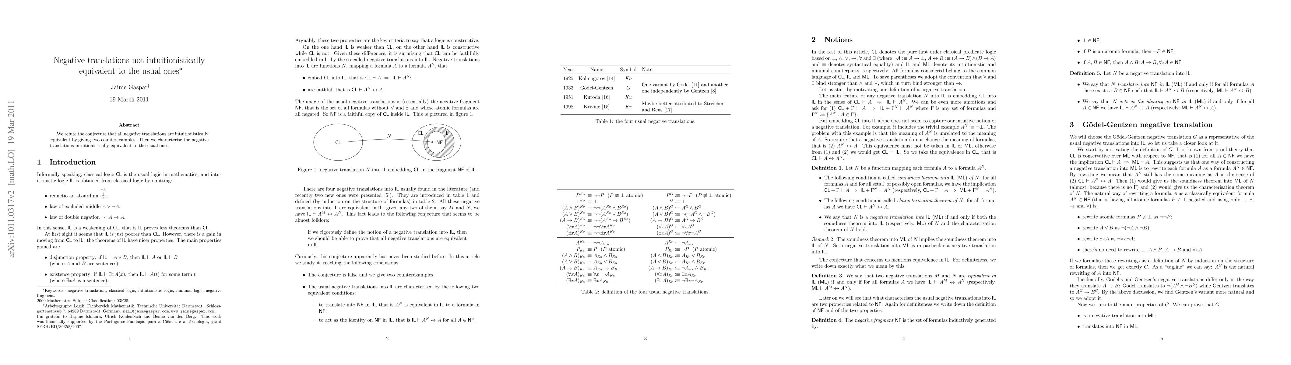 This paper refutes the conjecture that negative translations are intuitionistically equivalent to usual ones, providing two counterexamples, and characterizes the equivalent ones.