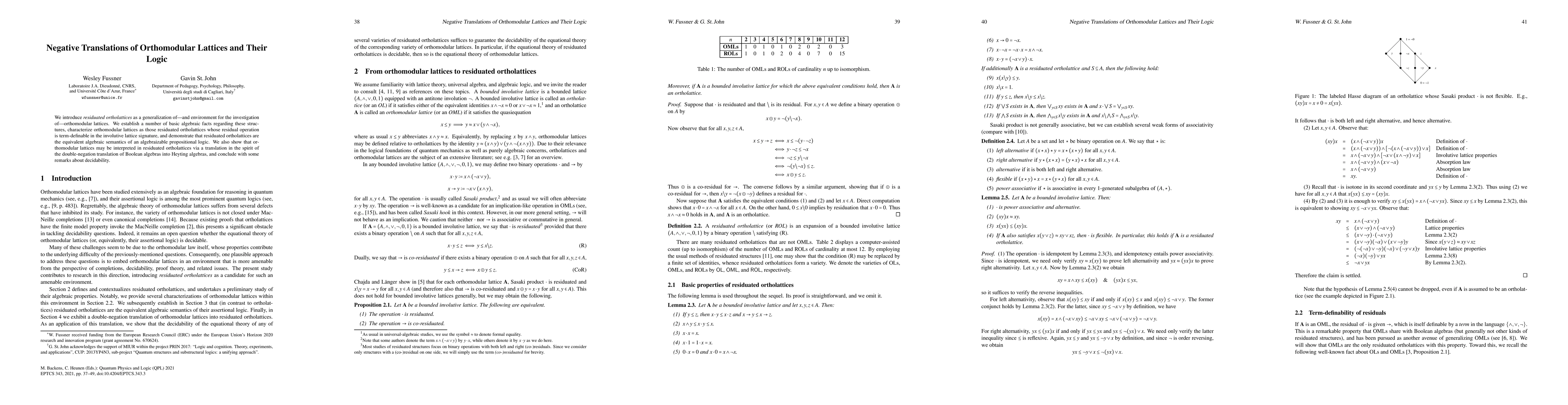 This paper introduces residuated ortholattices as a generalization of orthomodular lattices and shows they have an equivalent algebraic semantics to an algebraizable propositional logic.