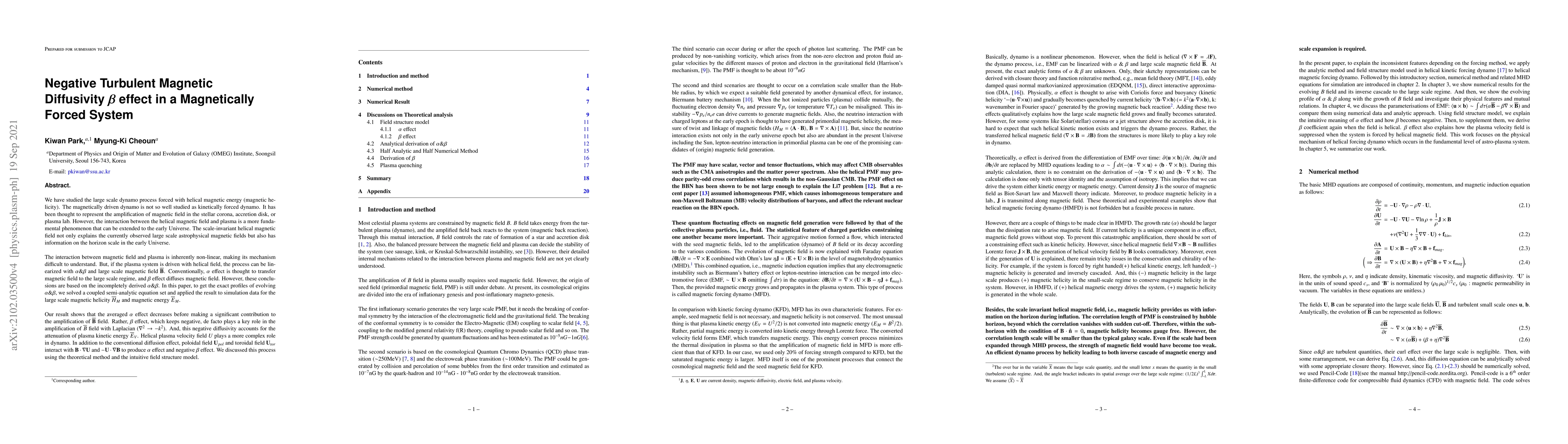 This paper explores the large scale dynamo process driven by helical magnetic energy, focusing on the lesser-studied magnetically forced dynamo. It reveals that the negative turbulent magnetic diffusivity β effect, rather than the α effect, significantly amplifies large scale magnetic fields, challenging conventional understanding and providing insights into astrophysical magnetic fields and early Universe conditions.