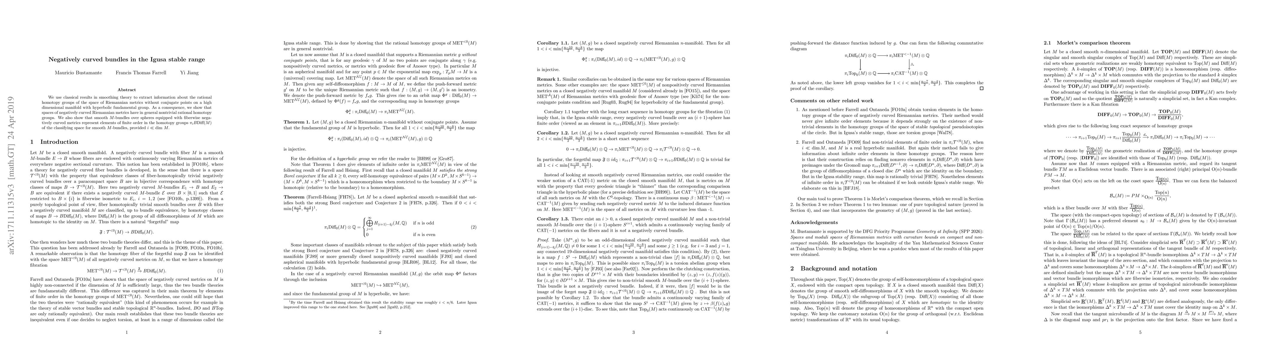 This paper utilizes smoothing theory to investigate the rational homotopy groups of negatively curved metrics on high-dimensional manifolds, demonstrating that certain M-bundles with fiberwise negatively curved metrics have finite order in the classifying space's homotopy groups when the dimension is sufficiently large.
