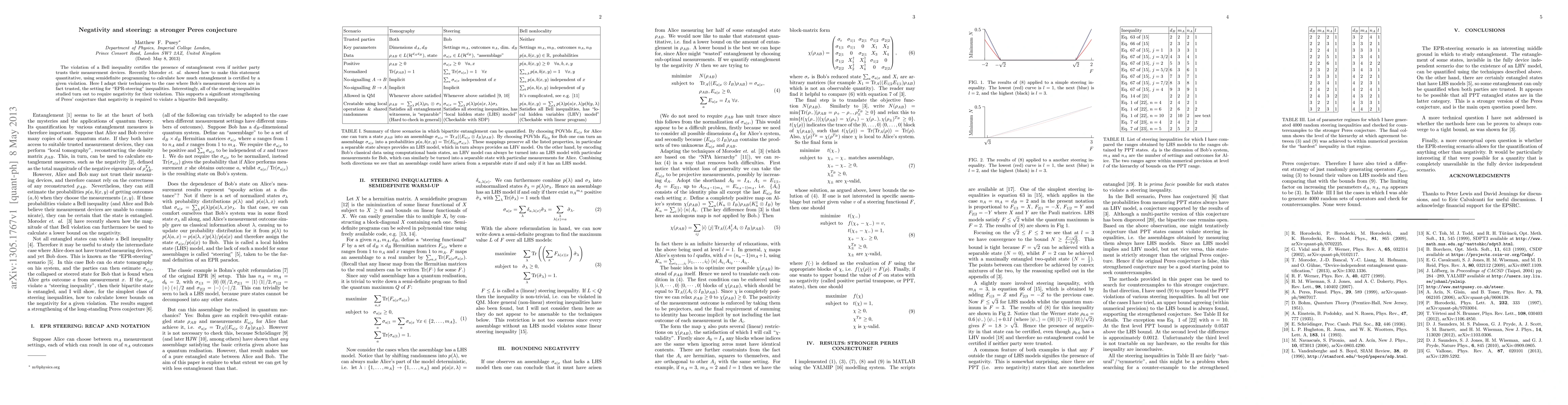 The violation of a Bell inequality certifies the presence of entanglement even if neither party trusts their measurement devices. Recently Moroder et. al. showed how to make this statement quantitative, using semidefinite programming to calculate how much entanglement is certified by a given violation. Here I adapt their techniques to the case where Bob's measurement devices are in fact trusted, the setting for "EPR-steering" inequalities. Interestingly, all of the steering inequalities studied turn out to require negativity for their violation. This supports a significant strengthening of Peres' conjecture that negativity is required to violate a bipartite Bell inequality.