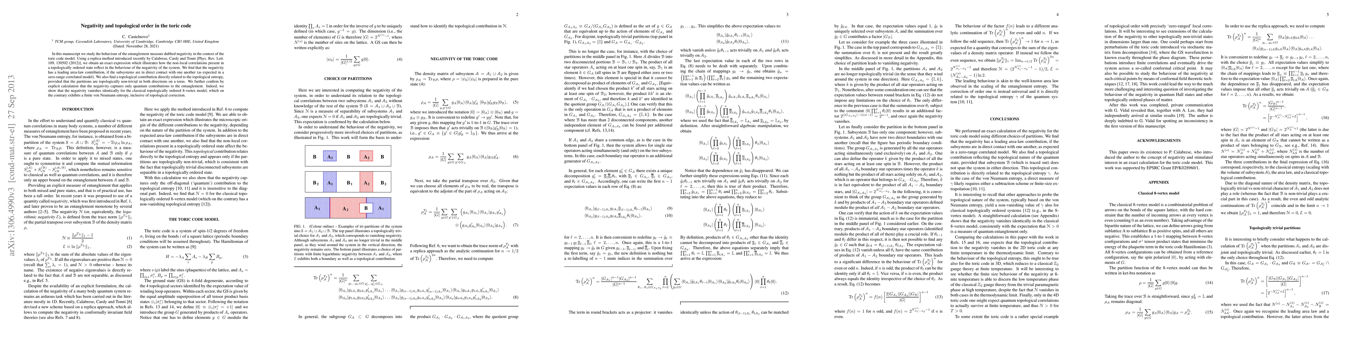 This paper investigates the entanglement measure called negativity in the toric code model, revealing an exact expression that connects non-local correlations in topologically ordered states to the negativity. It finds that negativity follows an area-law and includes a topological contribution tied to the topological entropy, while it vanishes for classical topologically ordered systems.