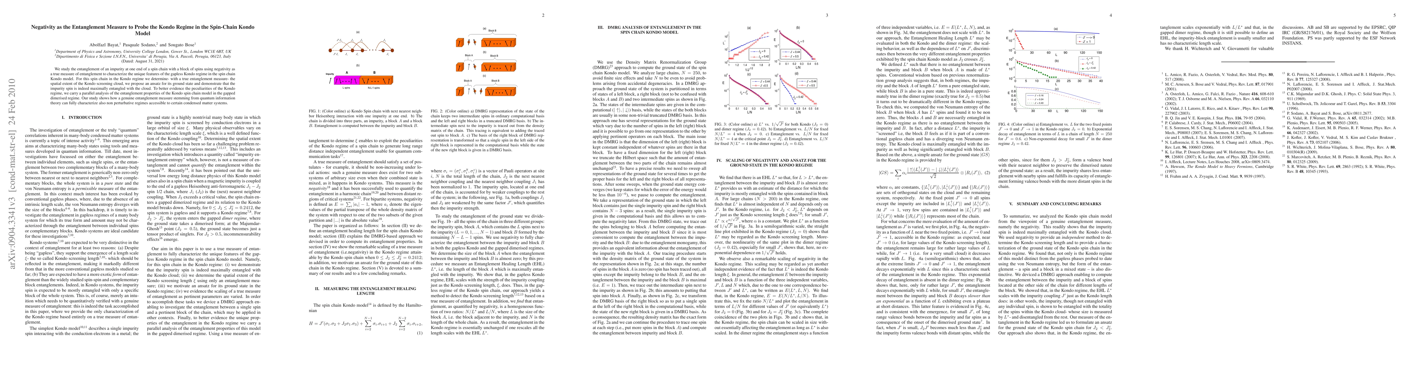 This paper investigates the entanglement of an impurity in a spin chain using negativity as a measure to characterize the Kondo regime, determining the spatial extent of the Kondo screening cloud and demonstrating maximal entanglement. It also compares these findings with the gapped dimerised regime to highlight the Kondo regime's unique entanglement properties.