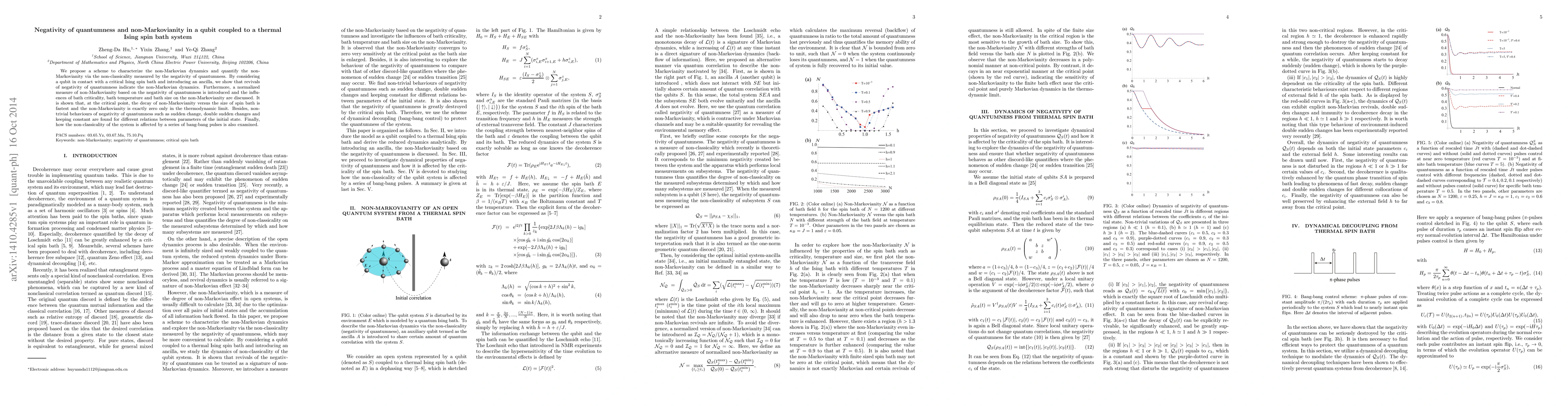 This paper proposes a method to quantify non-Markovianity in a qubit system interacting with a thermal Ising spin bath using the negativity of quantumness. It finds that revivals of this negativity indicate non-Markovian dynamics, and discusses how bath parameters affect the non-Markovianity, revealing non-trivial behaviors and the impact of control pulses on the system's non-classicality.