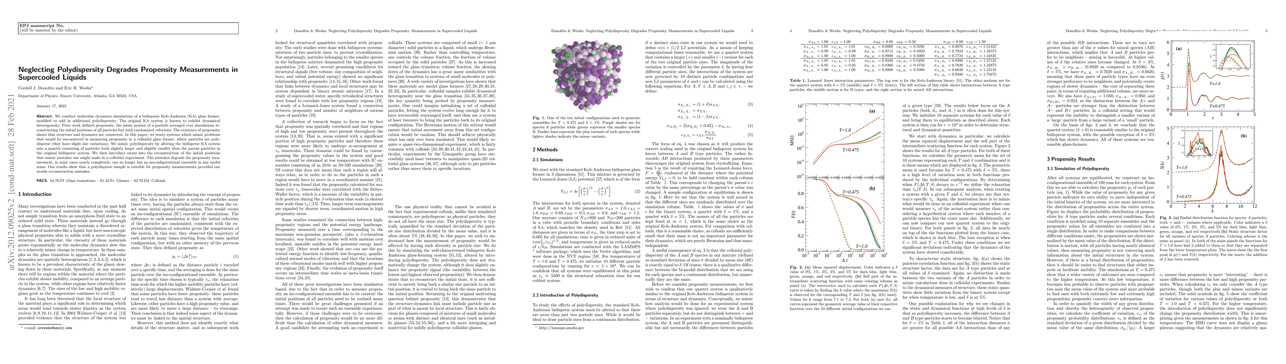 We conduct molecular dynamics simulations of a bidisperse Kob-Andersen (KA) glass former, modified to add in additional polydispersity. The original KA system is known to exhibit dynamical heterogeneity. Prior work defined propensity, the mean motion of a particle averaged over simulations reconstructing the initial positions of all particles but with randomized velocities. The existence of propensity shows that structure and dynamics are connected. In this paper, we study systems which mimic problems that would be encountered in measuring propensity in a colloidal glass former, where particles are polydisperse (they have slight size variations). We mimic polydispersity by altering the bidisperse KA system into a quartet consisting of particles both slightly larger and slightly smaller than the parent particles in the original bidisperse system. We then introduce errors into the reconstruction of the initial positions that mimic mistakes one might make in a colloidal experiment. The mistakes degrade the propensity measurement, in some cases nearly completely; one no longer has an isoconfigurational ensemble in any useful sense. Our results show that a polydisperse sample is suitable for propensity measurements provided one avoids reconstruction mistakes.