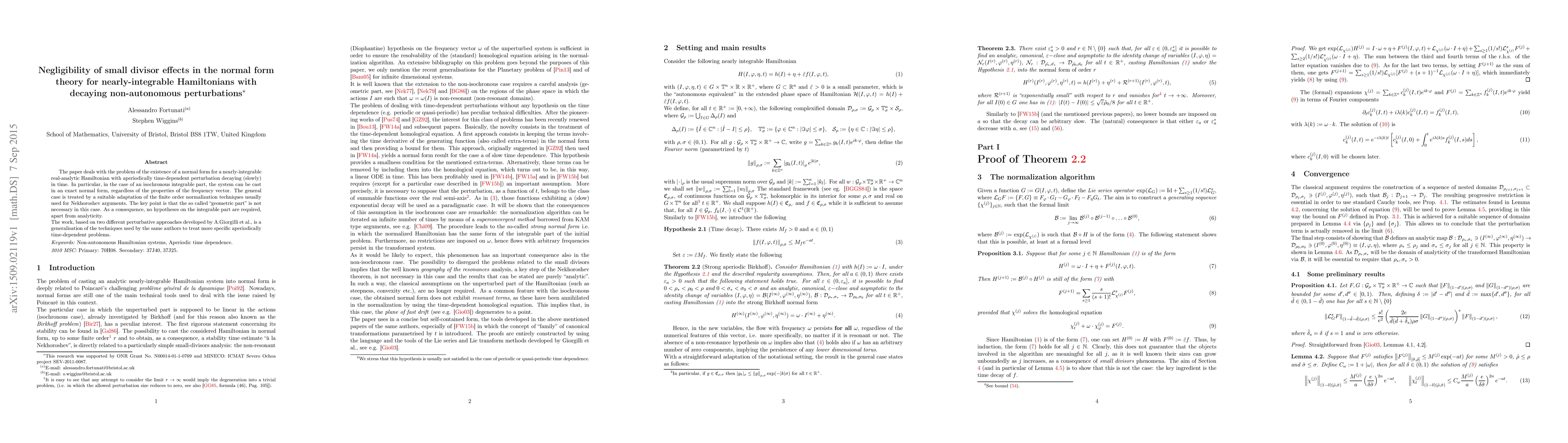 This paper explores the existence of a normal form for nearly-integrable Hamiltonians with slowly decaying, aperiodically time-dependent perturbations. It demonstrates that an exact normal form can be obtained without requiring specific properties of the frequency vector, generalizing previous techniques for more specific problems.